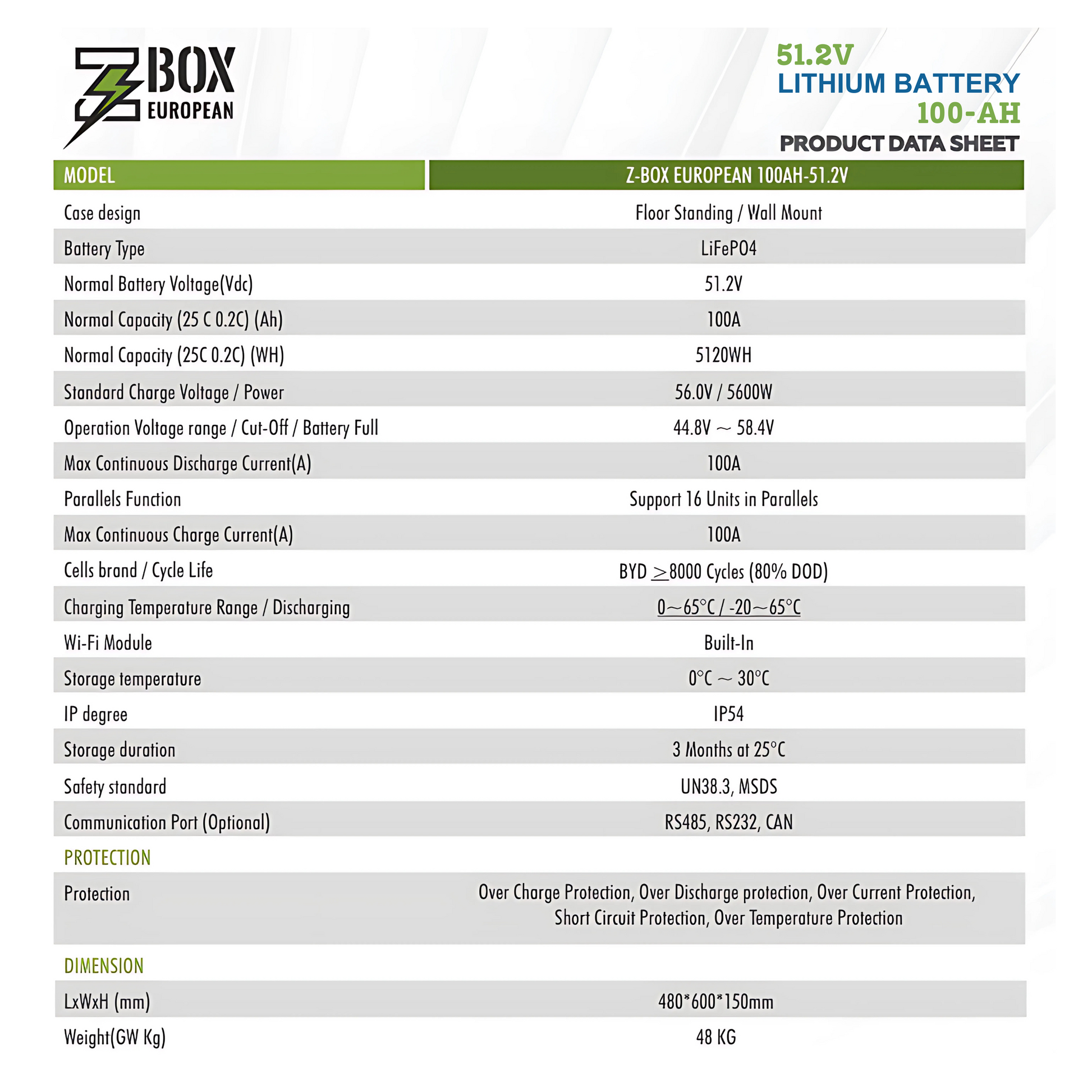 The Ziewnic Lithium Battery 100AH – 51.2V is a durable, maintenance-free energy storage solution designed for solar systems, UPS, and heavy loads. With 4000+ cycles, fast charging, smart BMS protection, and high efficiency, it ensures reliable backup for homes, offices, and businesses. Compact, lightweight, and eco-friendly, it offers over 10 years of consistent performance.